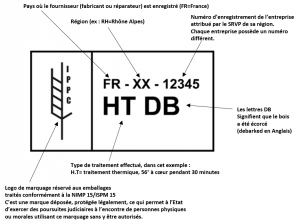 Le fabricant, détenteur de cette certification doit apposer sur les emballages en bois destinés à l’exportation un marquage qui fait apparaître notamment son numéro d’enregistrement.